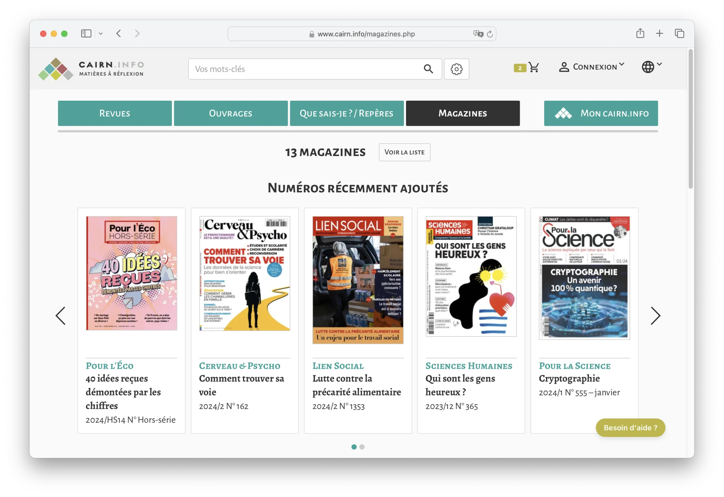 Cairn.info’s catalog now features fifteen specialist magazines.