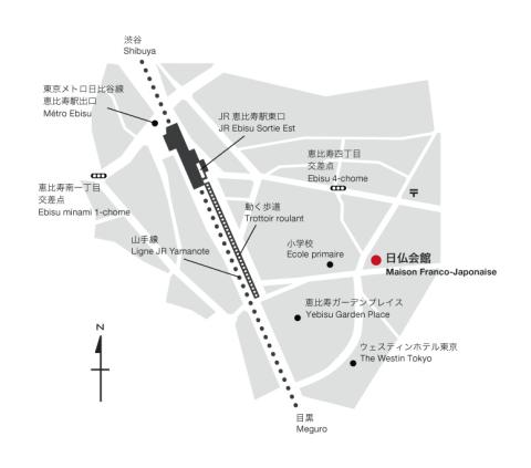 La Maison Franco-Japonaise se situe à 10 minutes à pied de la Gare Ebisu :